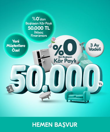 %0 kar payı ile 50.000 TL'ye varan İhtiyaç Finansmanından yararlanıyor.
